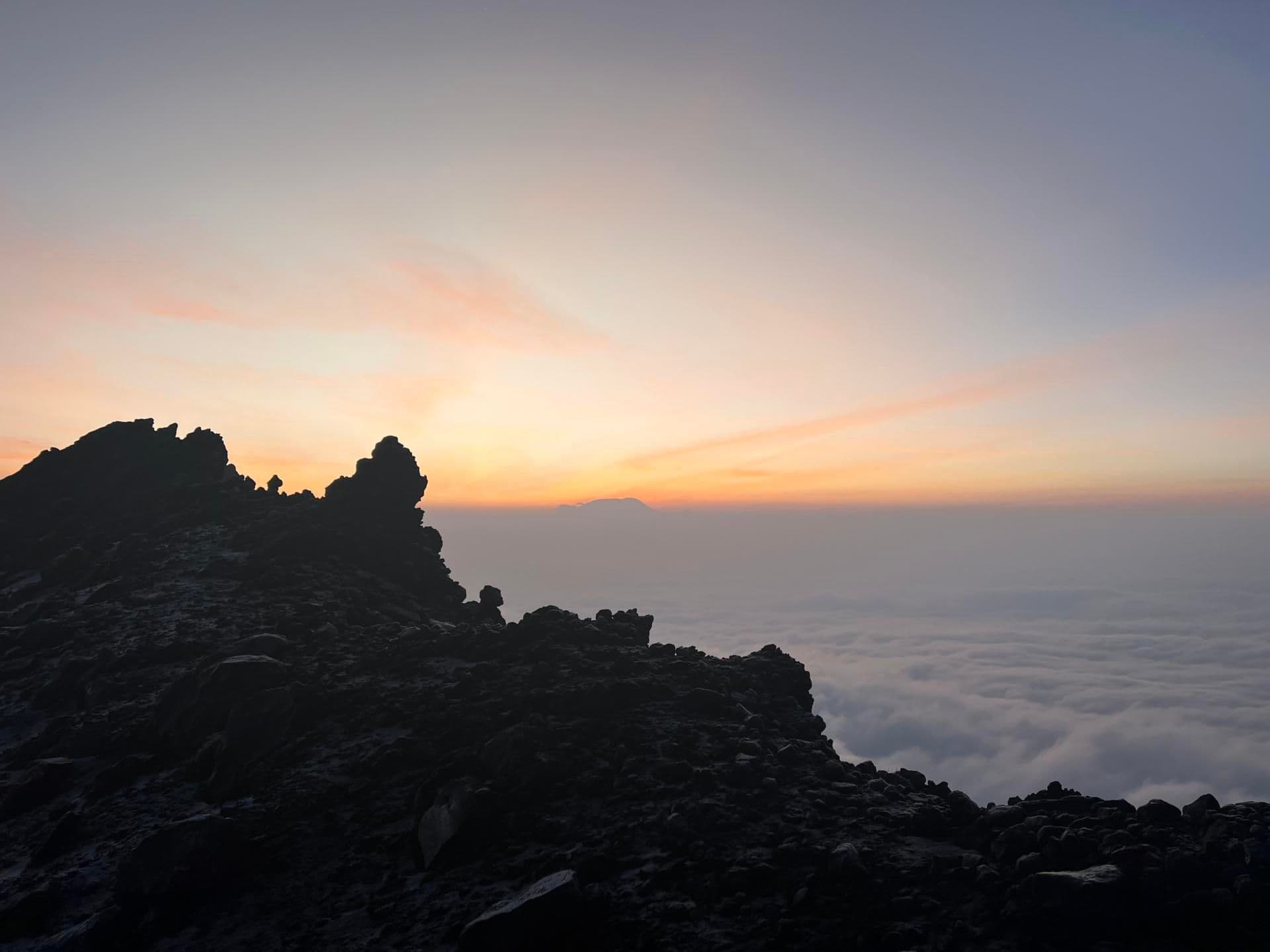 Our hike was planned for four days and three nights. On the first day, we began hiking through the beautiful forests of Arusha National Park towards the first camp. We saw many different kinds of birds and black and white colobus monkeys before finally reaching the Miriakamba Hut (2514 M) where we spent our first night. We woke up early on the second day to begin a steeper ascent towards the base camp, Saddle Hut (3570 M) which is literally a saddle point between Big Meru (the peak at 4,566 M) and Little Meru (3,820 M). Soon after arriving at the base camp, we had lunch and then took a short 45-minute hike up to Little Meru so our lungs could continue to acclimatize to the high altitude. As we towered over the base camp, the views were outstandingly stunning.