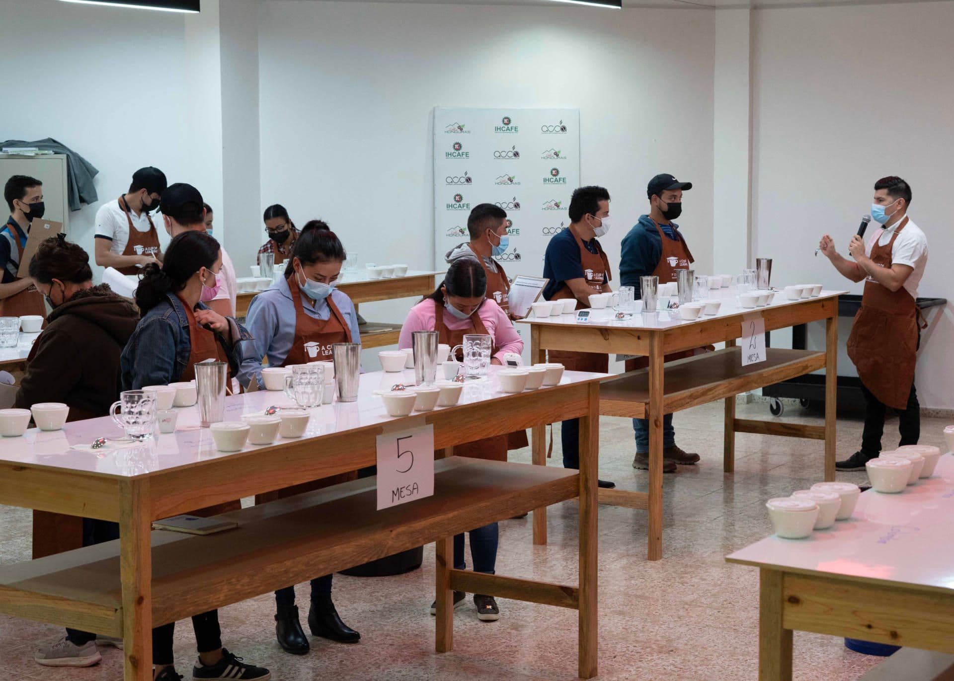 Over the course of two days, 25 enthusiastic youth (half of whom are women) from the departments of Ocotepeque, Copán, and Lempira, in Honduras, gathered in the main hall of IHCAFE to participate in two hands-on training courses led by Lavazza Training Center experts (Specialty Coffee Association certified), based in Turin, Italy.