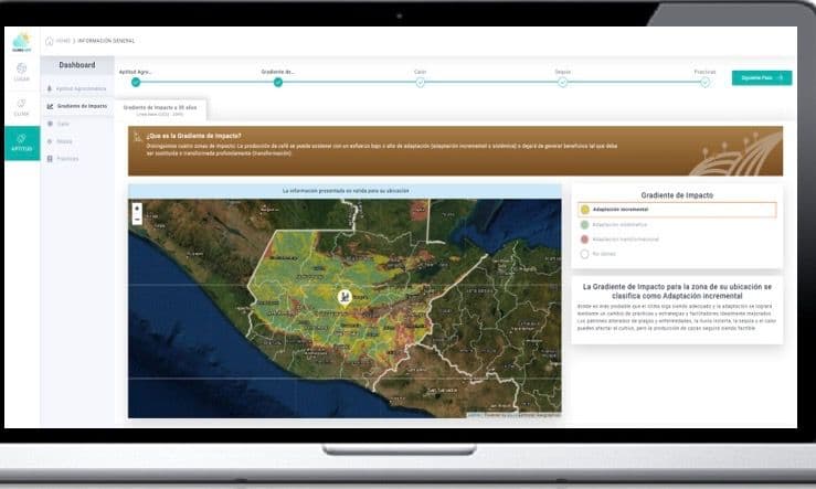 “While some regions in Central America will remain climatically suitable for coffee, others will require different levels of adaptation to bring coffee production forward and avoid losing significant territories” describes Jenny Wiegel, scientist at Alliance of Bioversity International and CIAT. Apart from providing real-time climate information, the platform delivers practical suggestions on which climate-smart agricultural practices should be implemented in the territory that is looked up. “This is what makes aCLIMAtar unique. The goal is to keep territories suitable for coffee production”.