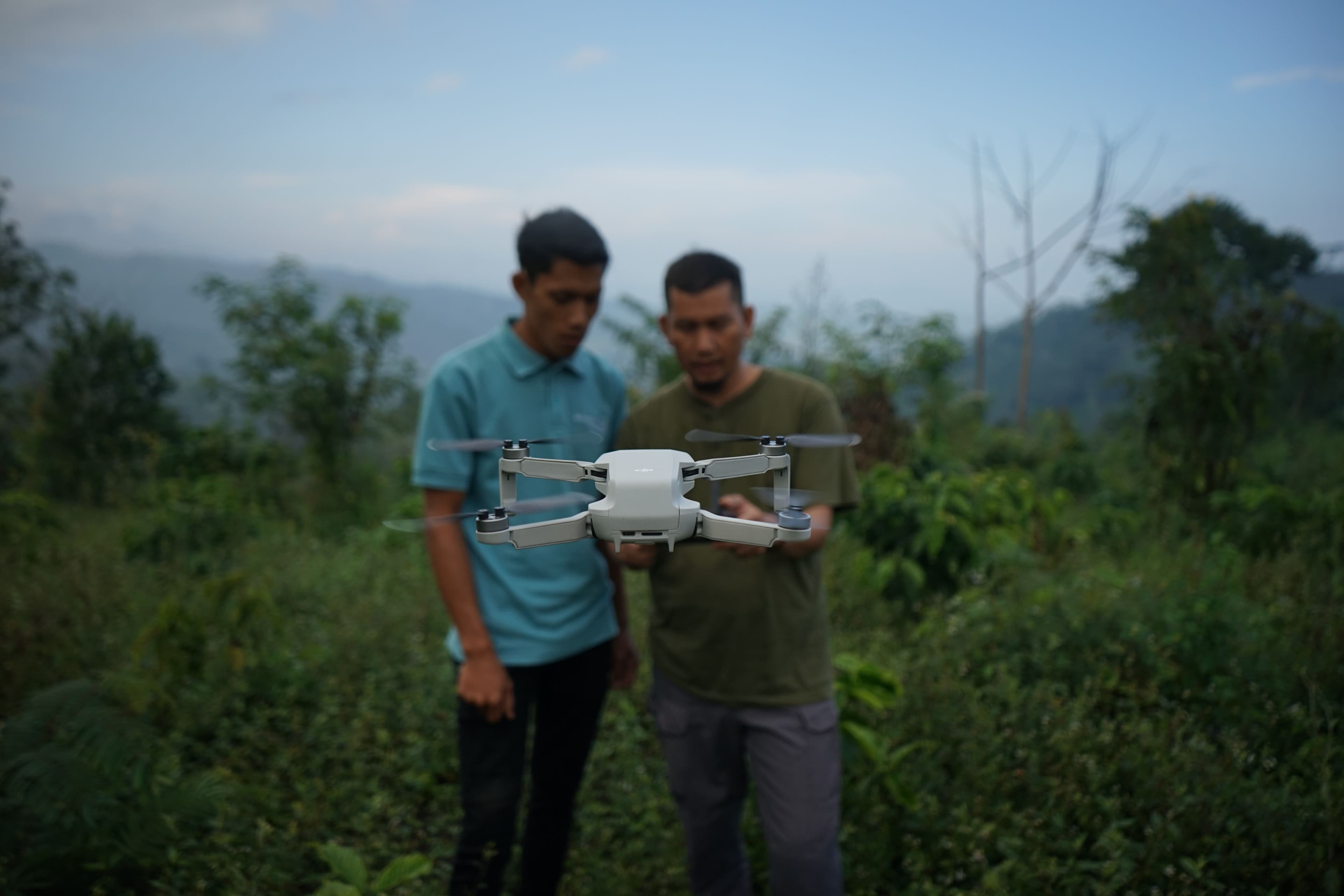 Nestled in the Ulu Danau village in South Sumatra, Indonesia, is Lake Rakihan. With a height of 800 meters above sea level, this pristine lake and its surroundings is the perfect place for growing a variety of crops including Robusta coffee which is highly profitable for smallholders. Due to the area's mountainous terrain, HRNS Indonesia has introduced smallholder coffee farmers in Ulu Danau village to drones.