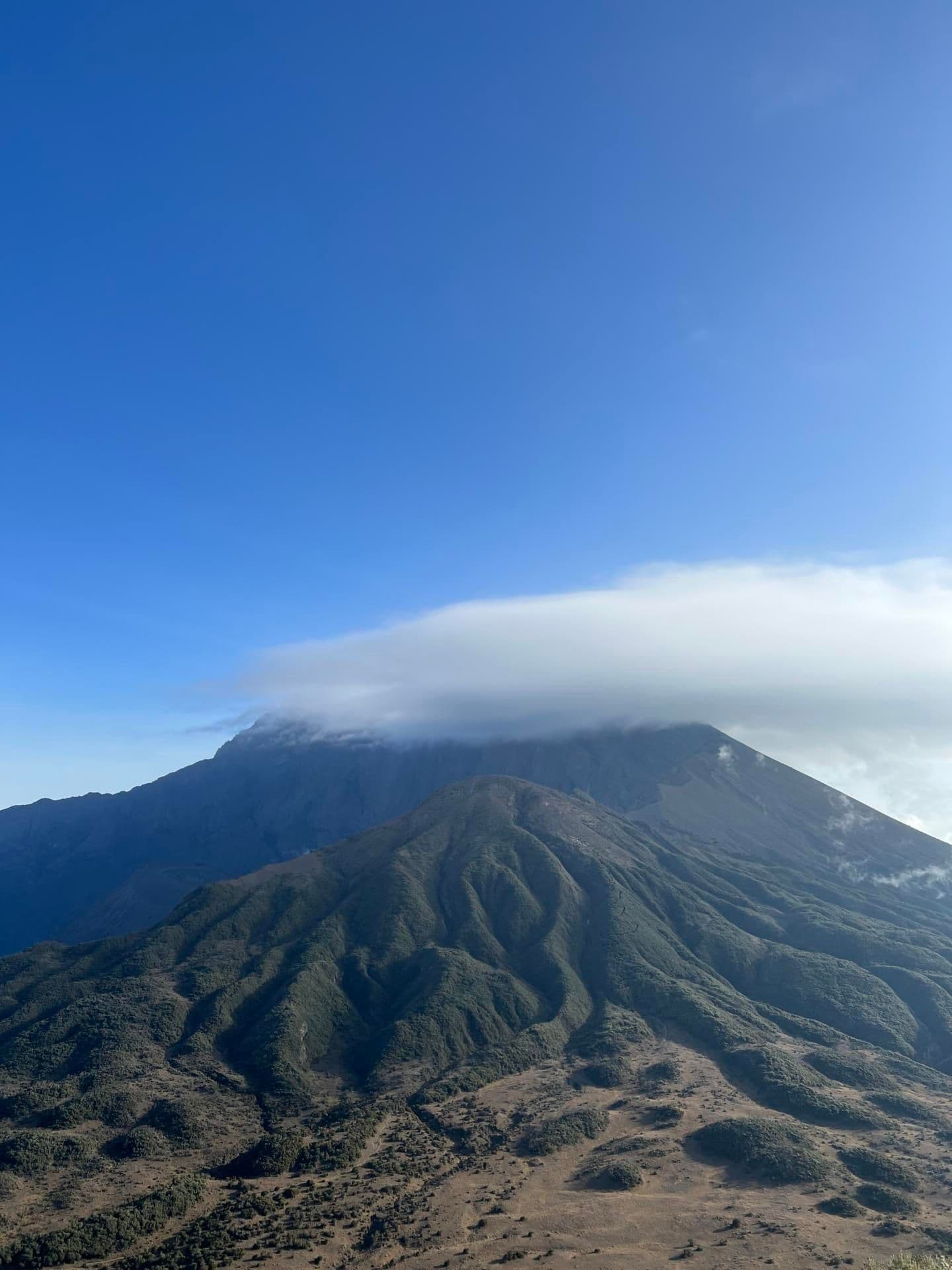 Our hike was planned for four days and three nights. On the first day, we began hiking through the beautiful forests of Arusha National Park towards the first camp. We saw many different kinds of birds and black and white colobus monkeys before finally reaching the Miriakamba Hut (2514 M) where we spent our first night. We woke up early on the second day to begin a steeper ascent towards the base camp, Saddle Hut (3570 M) which is literally a saddle point between Big Meru (the peak at 4,566 M) and Little Meru (3,820 M). Soon after arriving at the base camp, we had lunch and then took a short 45-minute hike up to Little Meru so our lungs could continue to acclimatize to the high altitude. As we towered over the base camp, the views were outstandingly stunning.